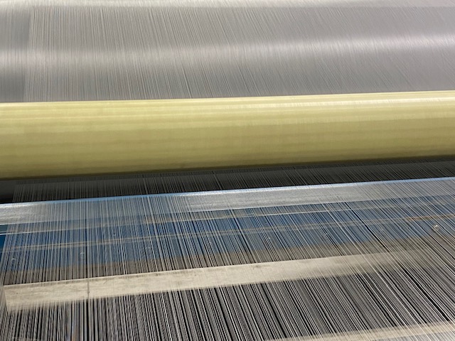 Sobald der Baum mit allen Fäden in der Kette angekommen ist, beginnt die Webphase. Der Schussfaden wird auf dem Webstuhl eingetragen, wodurch eine neue Rolle gewebtes Netz entsteht. In dieser heiklen Phase sind die Umgebungsbedingungen sehr wichtig, um eine kontrollierte Temperatur und Feuchtigkeit aufrechtzuerhalten, um Probleme am Draht zu begrenzen. Die Webstühle der neuesten Generation können viele Informationen über die laufenden Webmethoden verwalten. Diese Phase ist auch die faszinierendste. Fäden zu sehen, die sich bei hohen Geschwindigkeiten mit extremer Präzision verflechten, ist ein großartiges Thema, um qualitativ hochwertige Stoffe zu erzielen.